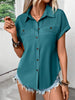 Pleated Detail Collared Neck Short Sleeve Shirt